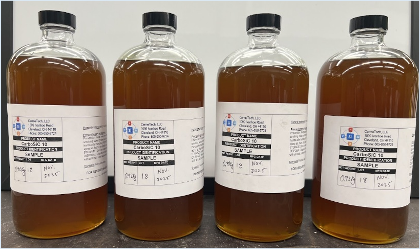 CarboSiC 10 is a silicon-carbide (SiC) precursor engineered for the fabrication of ultra-high-temperature SiC ceramic composites. It enables exceptional retention of structural integrity and mechanical performance at temperatures exceeding those achievable with any other commercially available SiC-forming precursor.